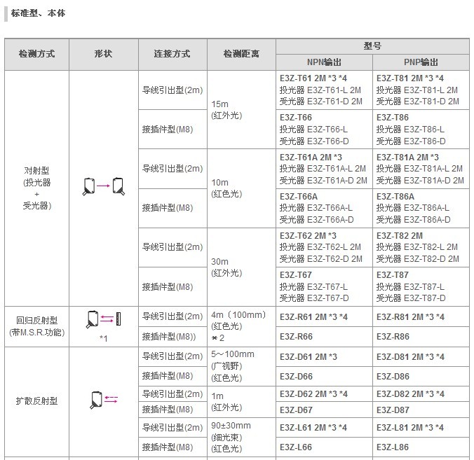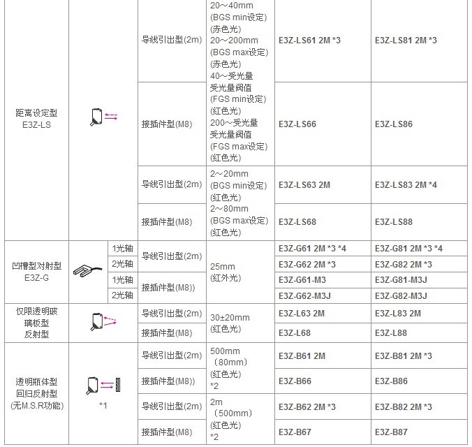*3. 備有M12標(biāo)準接插件中繼型(0.3m),指定時請在型號的末尾加上“-M1J 0.3M”。(例:E3Z-T61-M1TJ 0.3M)