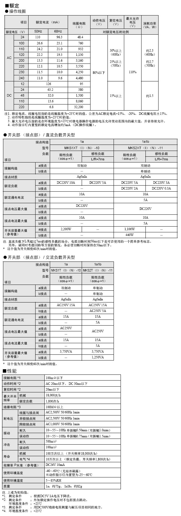 歐姆龍繼電器MKX系列直流負載繼電器產(chǎn)品參數(shù):